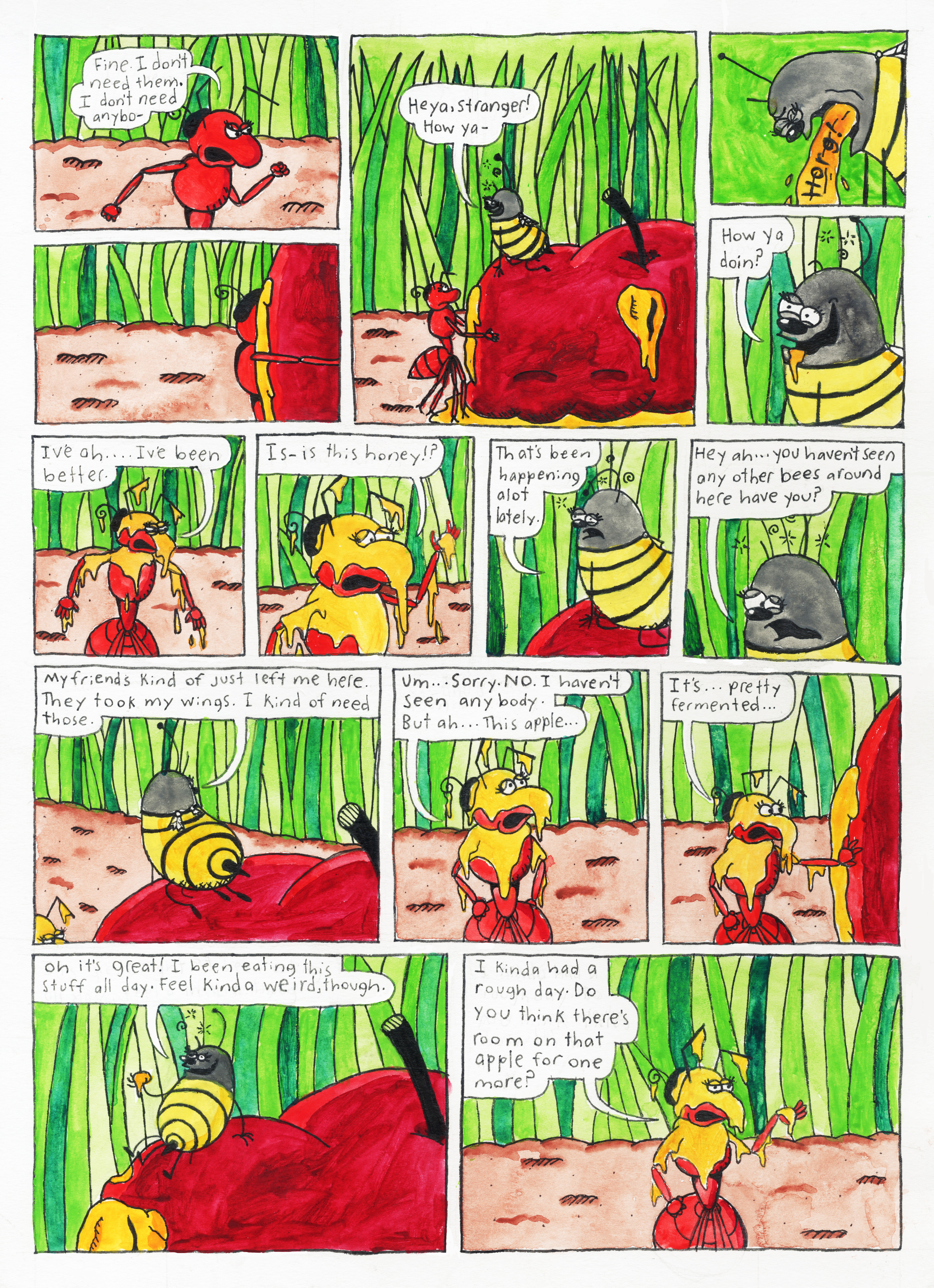 wip of interactive comic, page 2 – roughs and base lineart + panels.